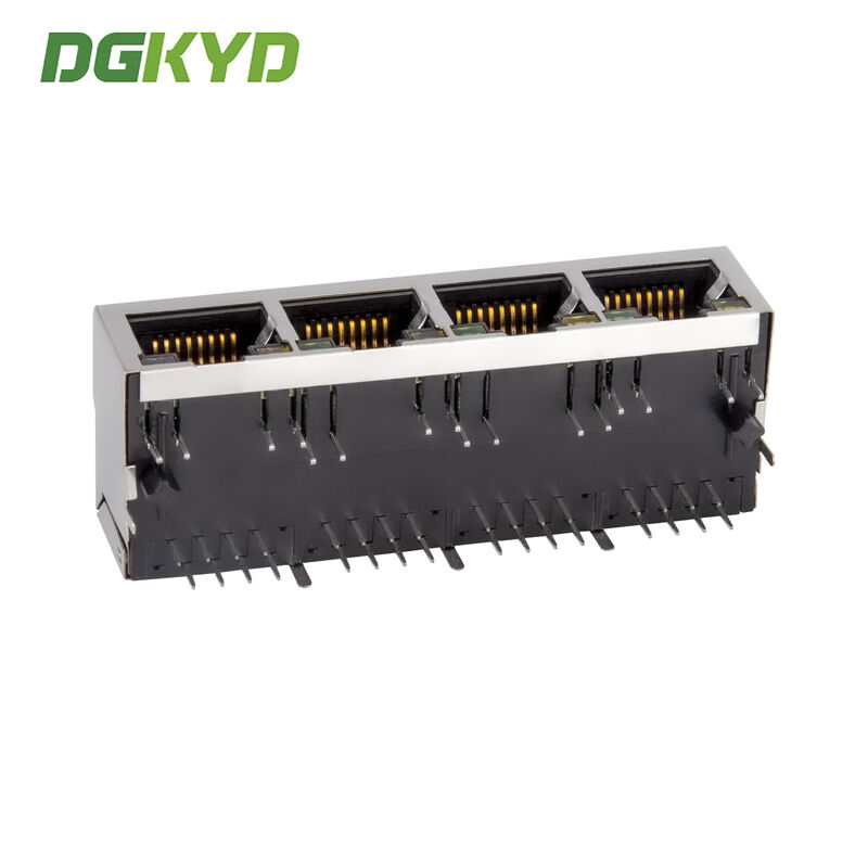 RJ45 デュアルポートコネクタ フィルタ内蔵なし ライトストライプなし シールドピン前方4.57mm DGKYD112B035HWA1D13